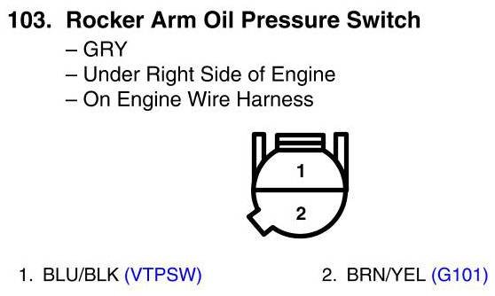 View 103 - Rocker Arm Oil Pressure Switch Connector View