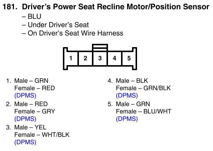 View 181 - Driver's Power Seat Recline Motor/Position Sensor Connector View
