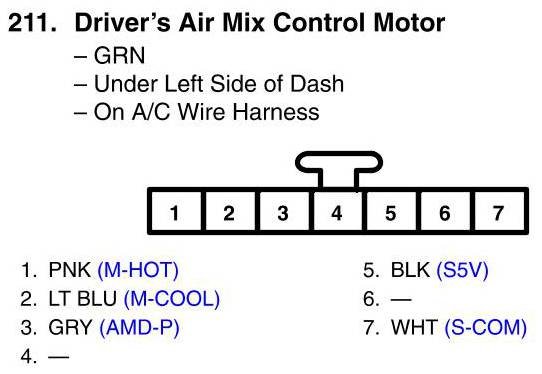 View 211 - Driver's Air Mix Control Motor Connector View