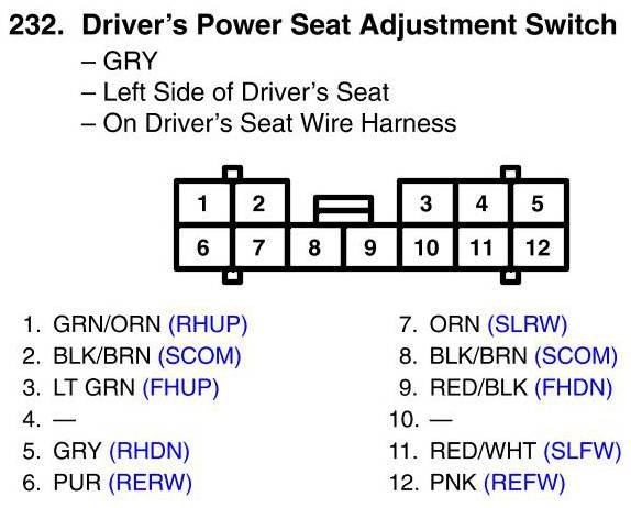 View 232 - Driver's Power Seat Adjustment Switch Connector View