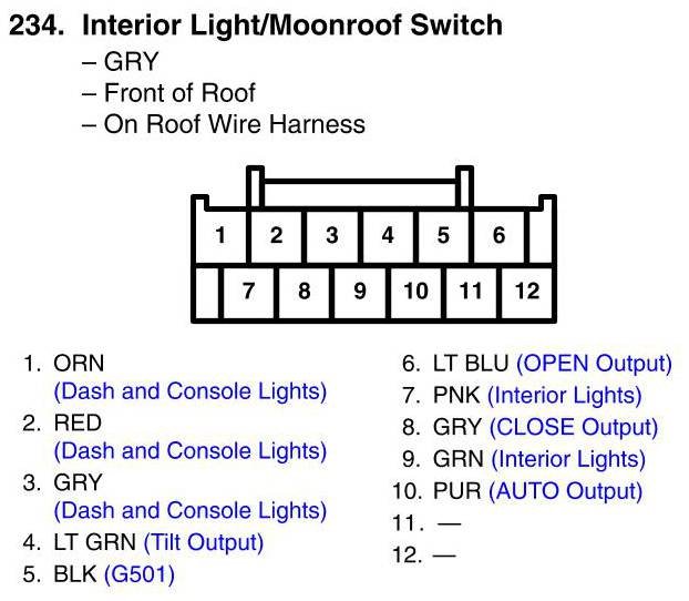 View 234 - Interior Light/Moonroof Switch Connector View