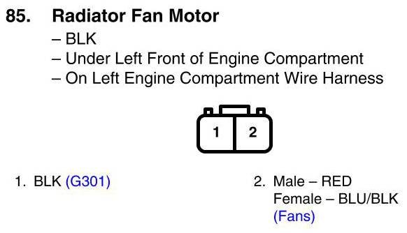 View 85 - Radiator Fan Motor Connector View