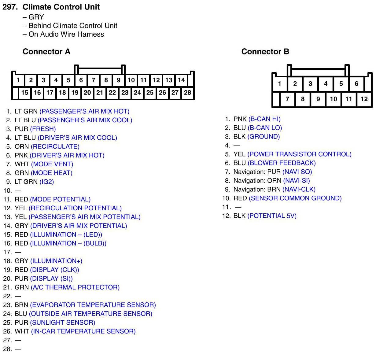 Climate Control Unit Connector View