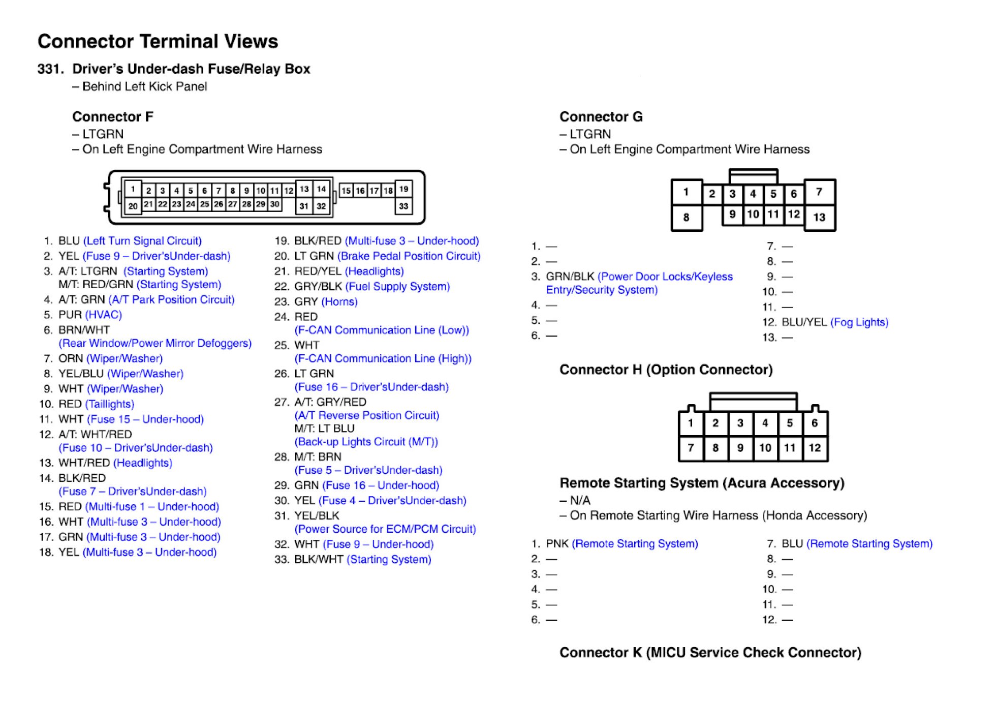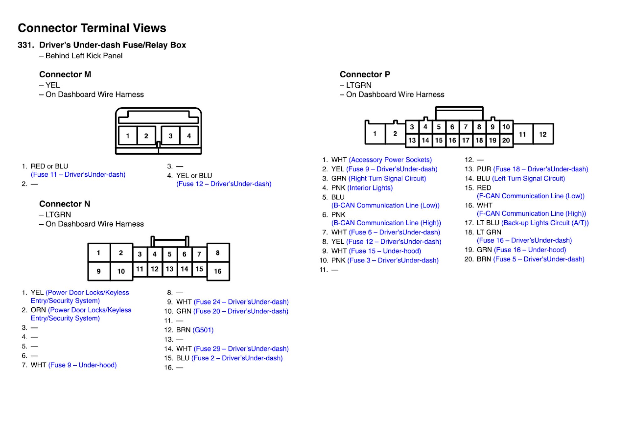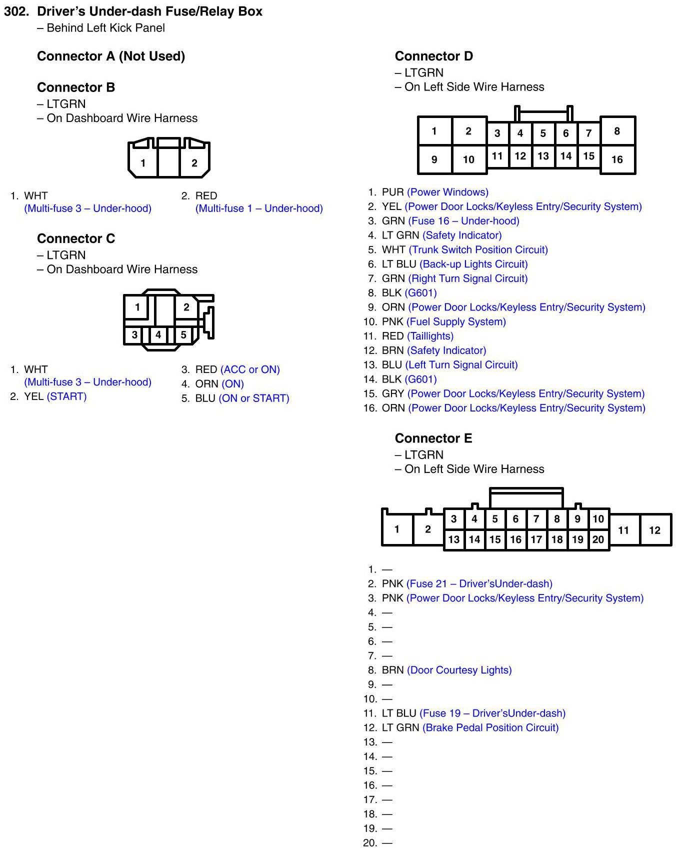 Driver's Under-dash Fuse/Relay Box Connector View