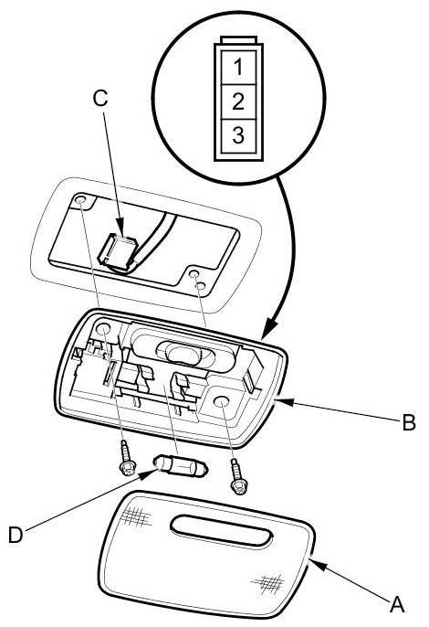6. If the continuity is not as specified, check the bulb (D). If the bulb is OK; replace the ceiling light.