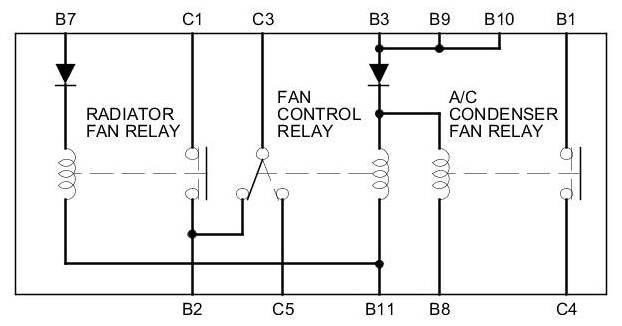 A/C condenser fan relay, Fan control relay, Radiator fan relay