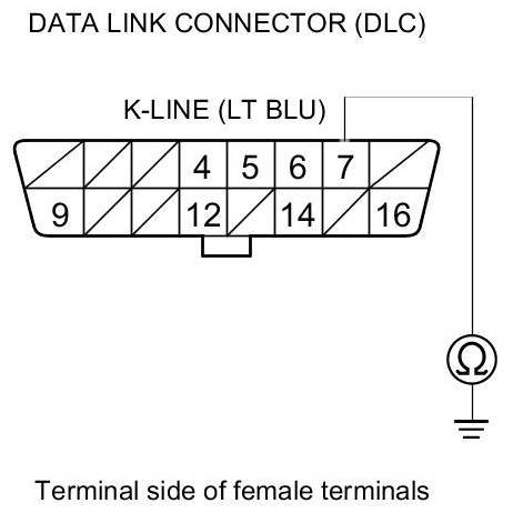 19. Check for continuity between DLC terminal No. 7 and body ground.