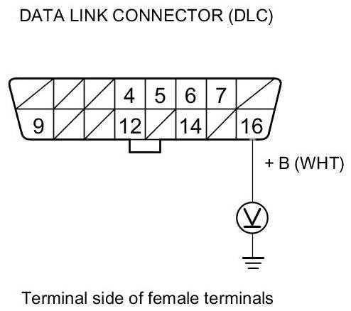 26. Measure the voltage between DLC terminal No. 16 and body ground.