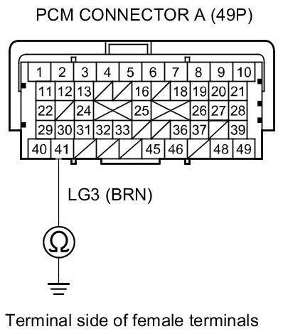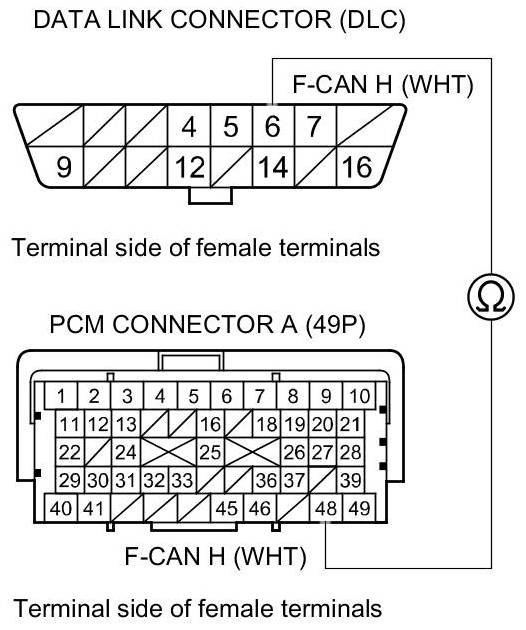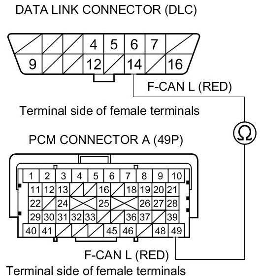 33. Check for continuity between PCM connector terminal A49 and DLC terminal No. 14.