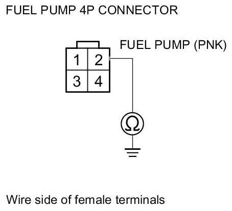 55. Check for continuity between fuel pump 4P connector terminal No. 2 and body ground.
