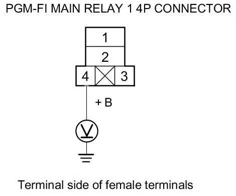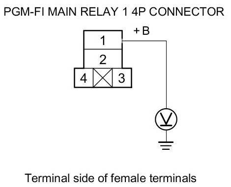 63. Measure the voltage between PGM-FI main relay 1 4P connector terminal No. 4 and body ground.