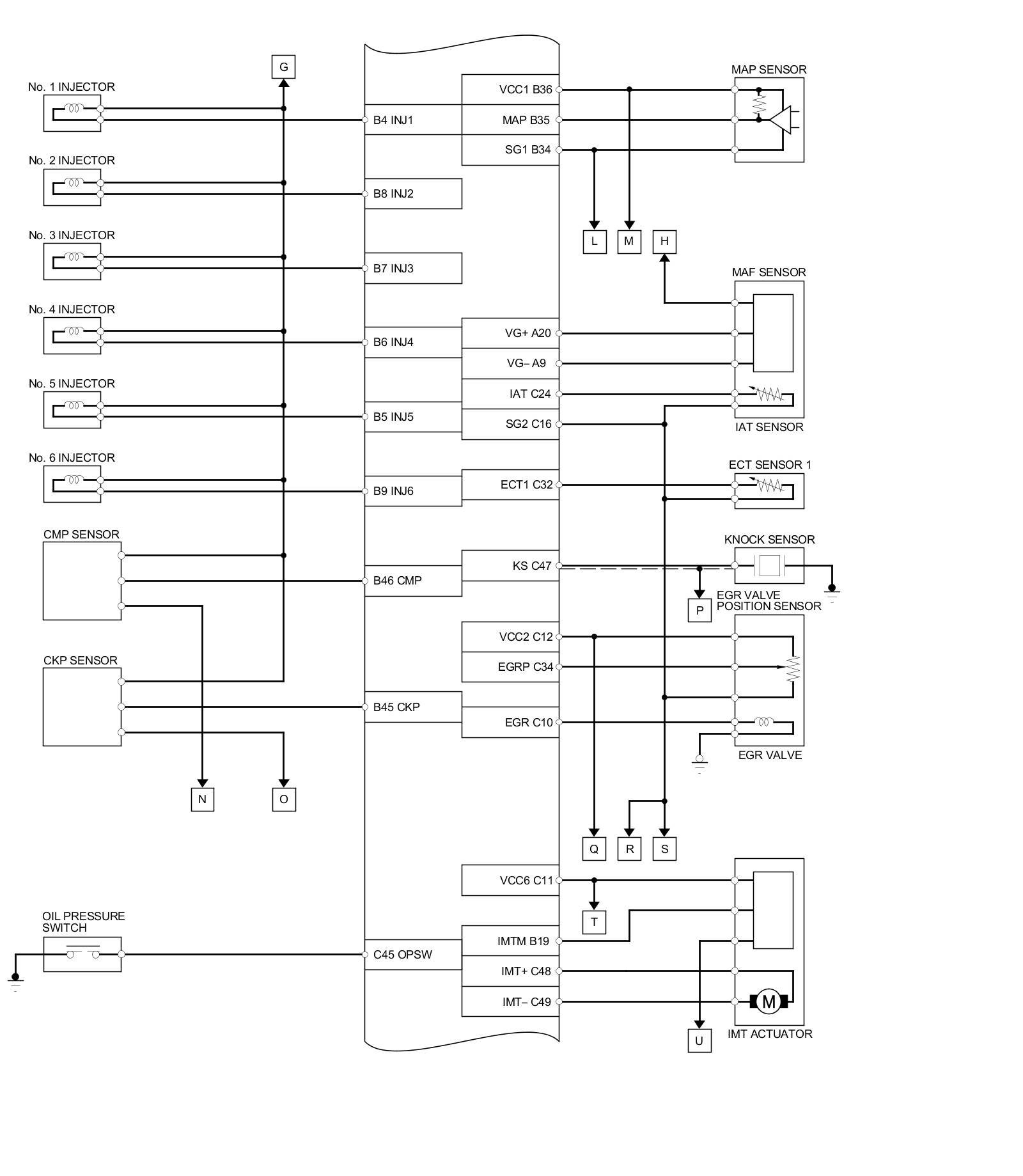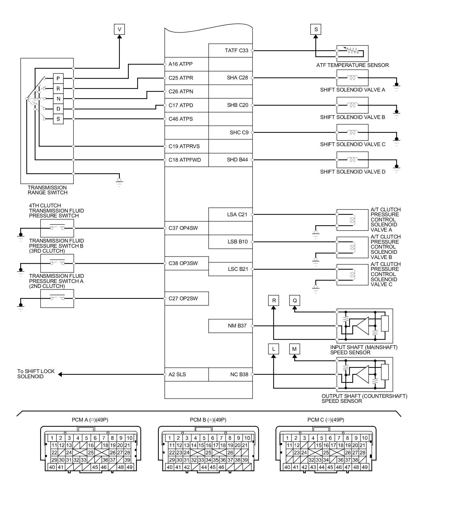 PCM Inputs and Outputs at PCM Connector A (square) (49P)