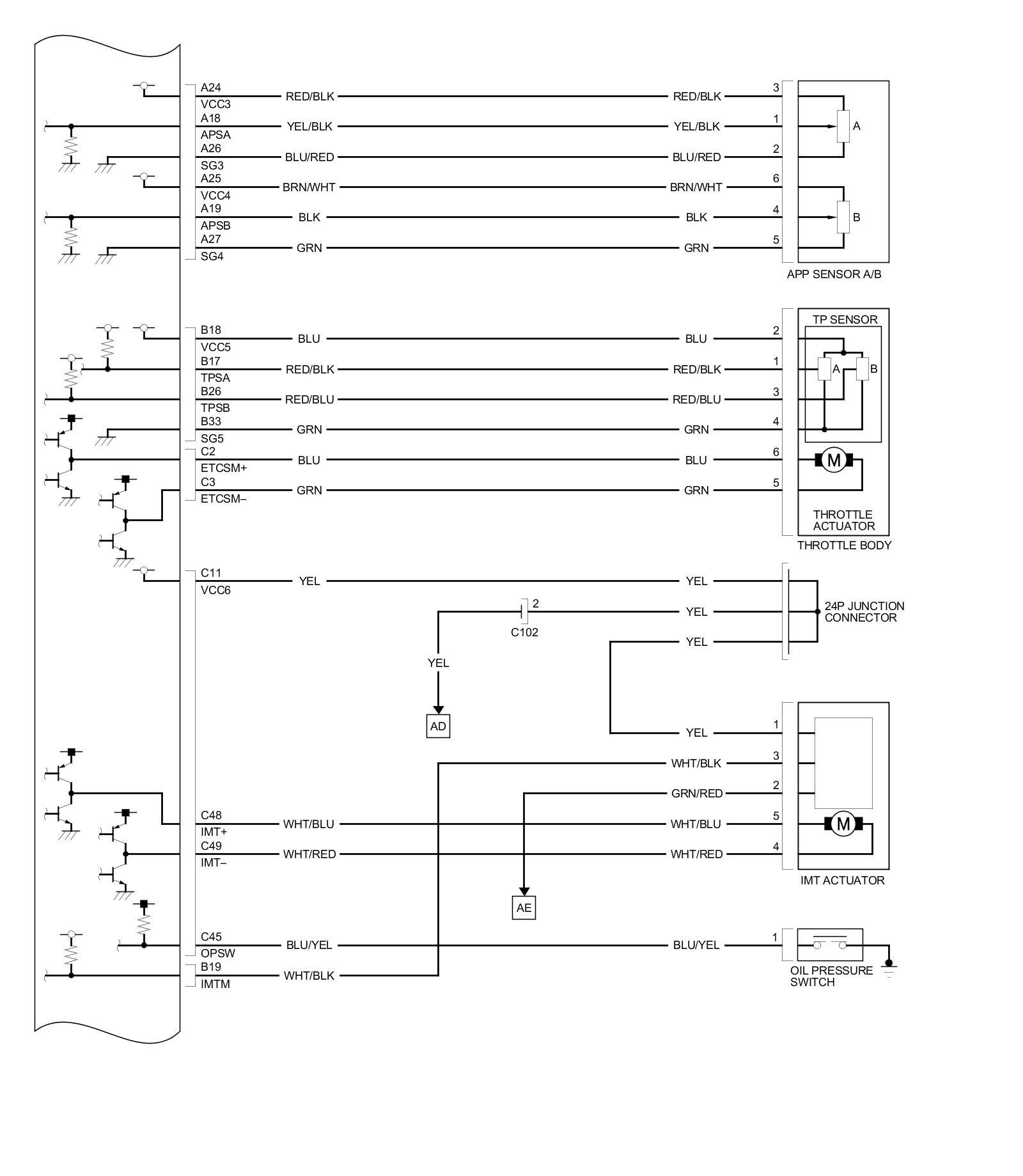 PCM Inputs and Outputs at PCM Connector C (circle) (49P)