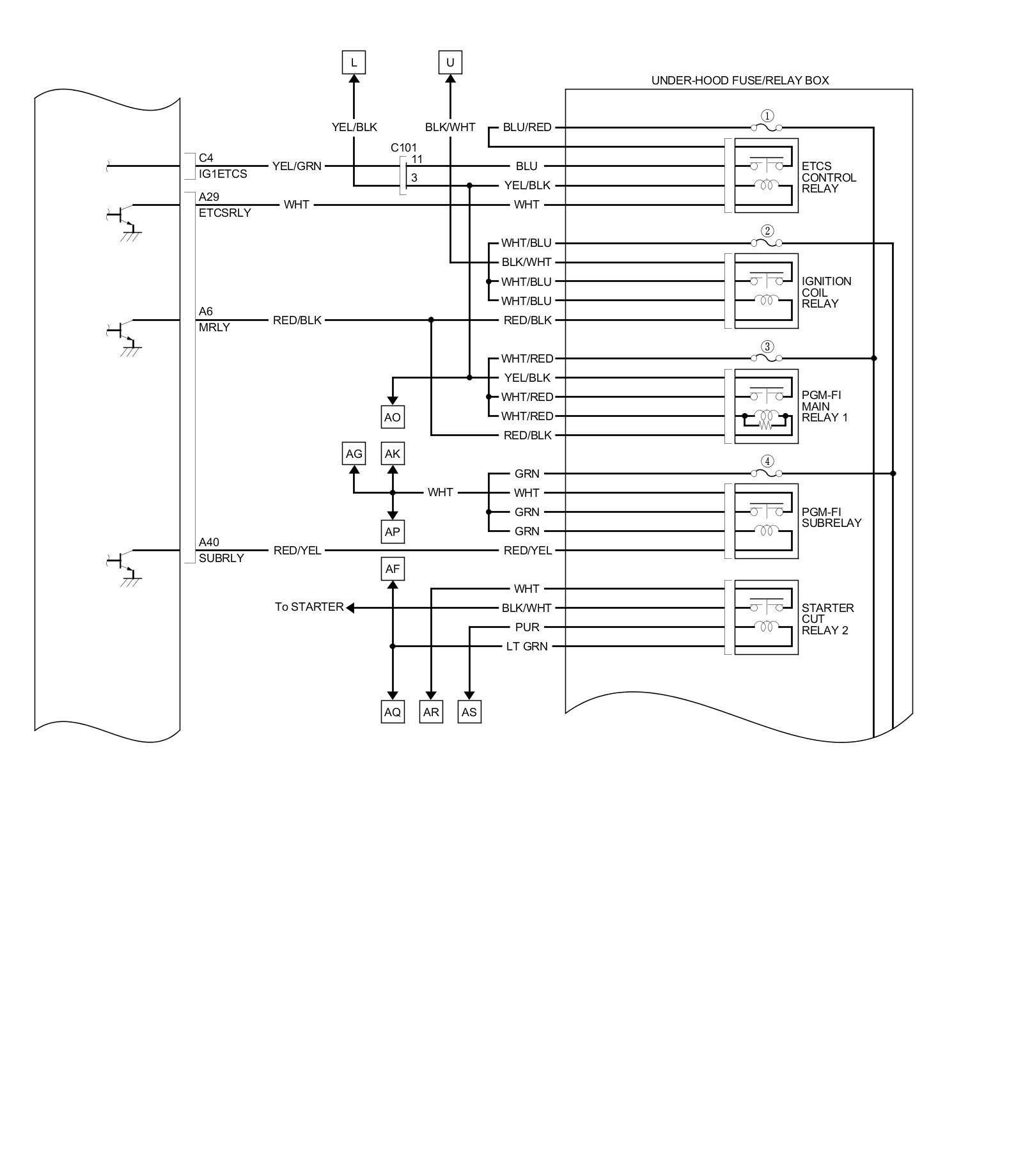 After the ignition switch is turned to LOCK (0), the PCM stays on for up to an hour. If the PCM connector is disconnected during this time, the PCM may be damaged. To cancel this mode, disconnect the negative cable from the battery or jump the SCS line with the HDS after the ignition switch is turned to LOCK (0).