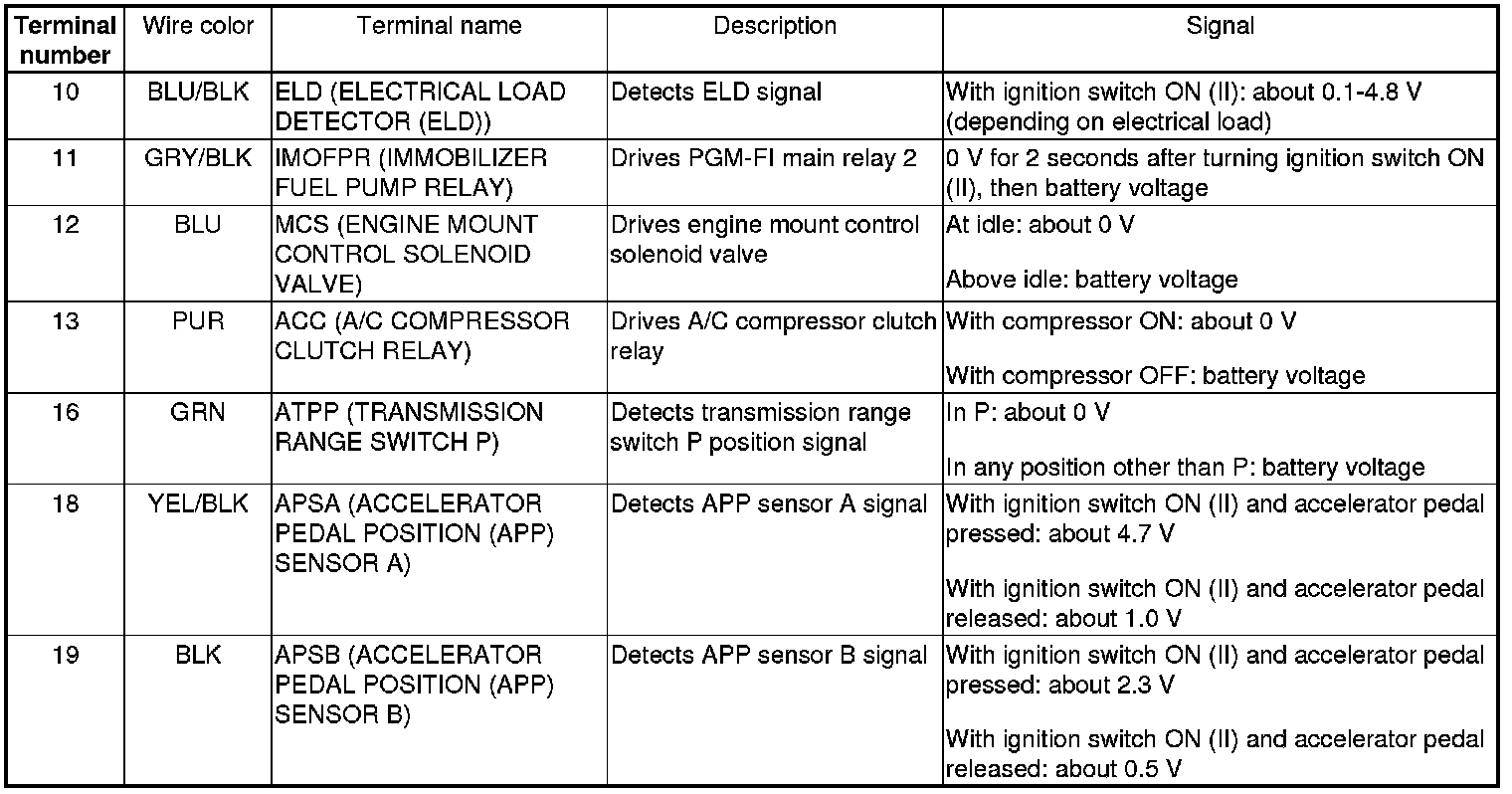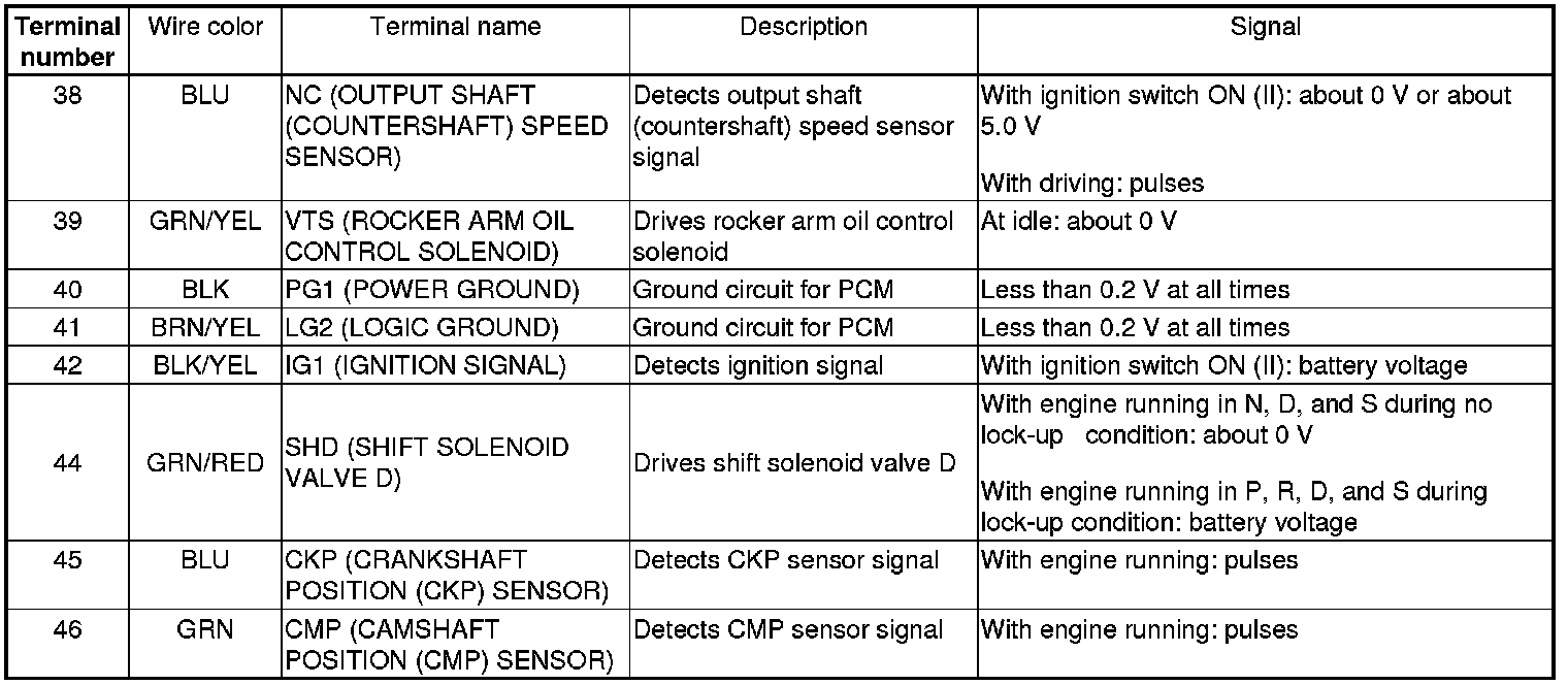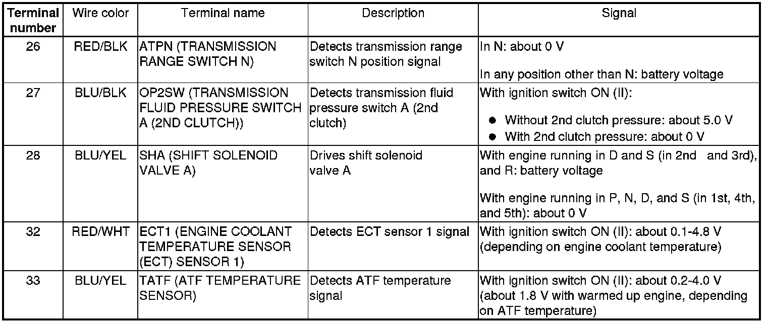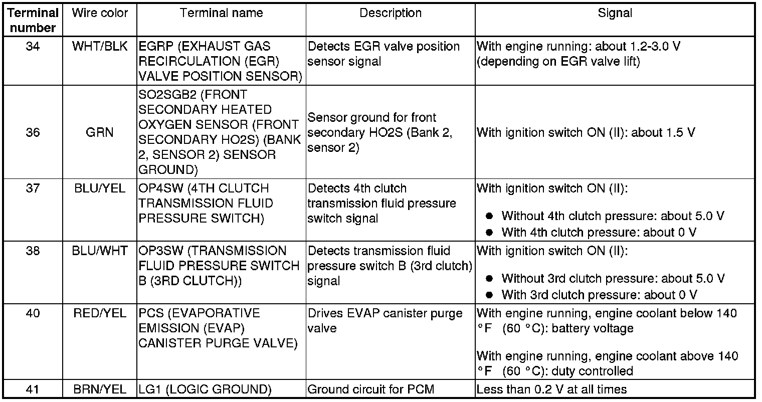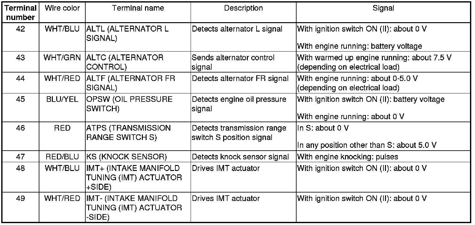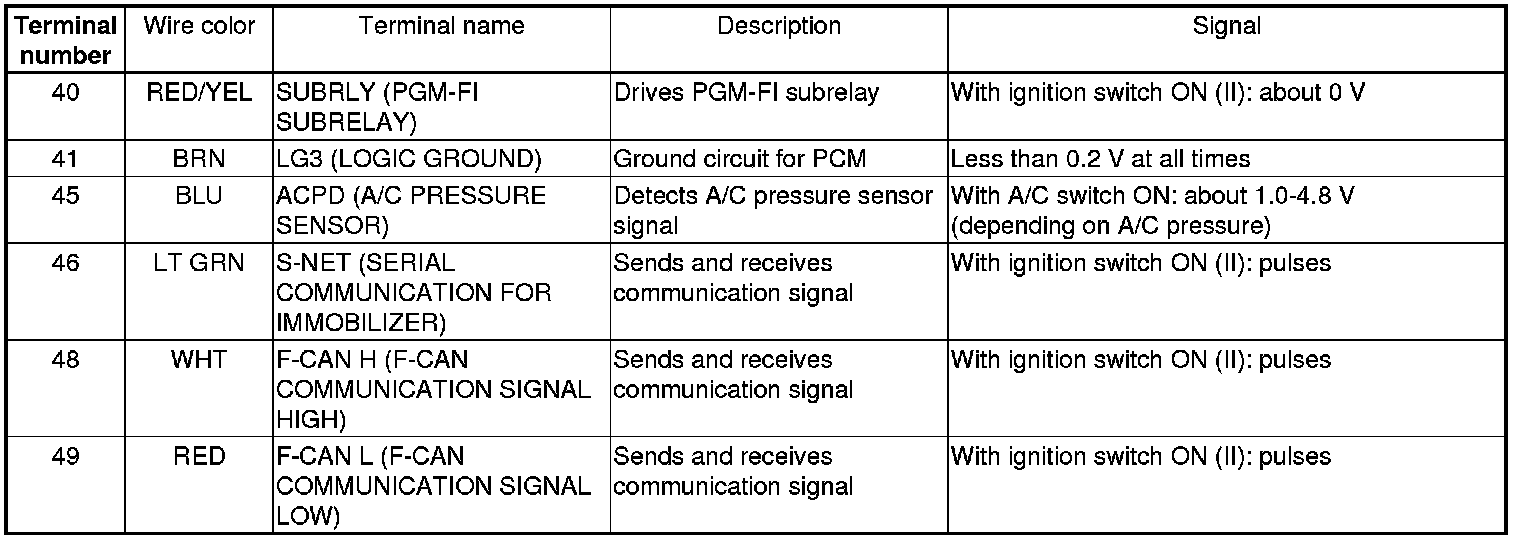 PCM Inputs and Outputs at PCM Connector A (square) (49P)
