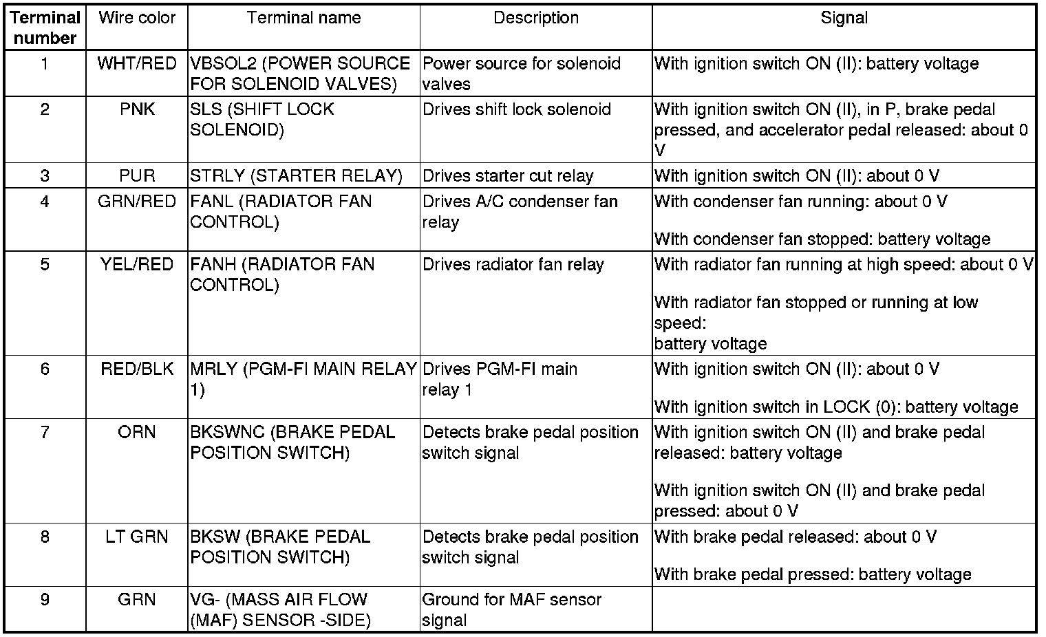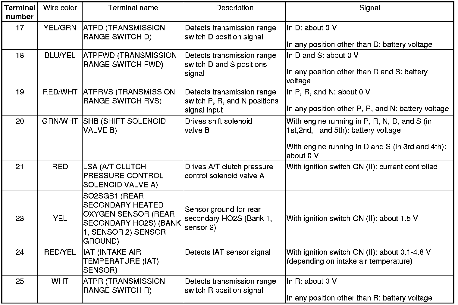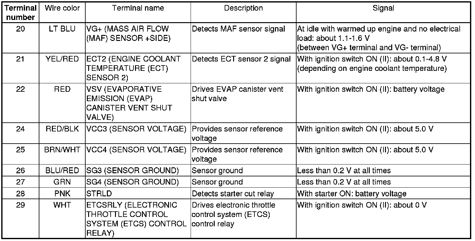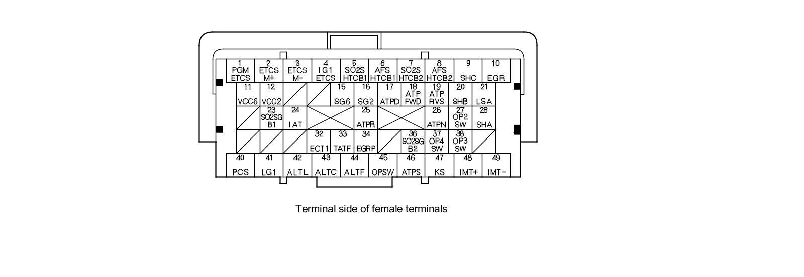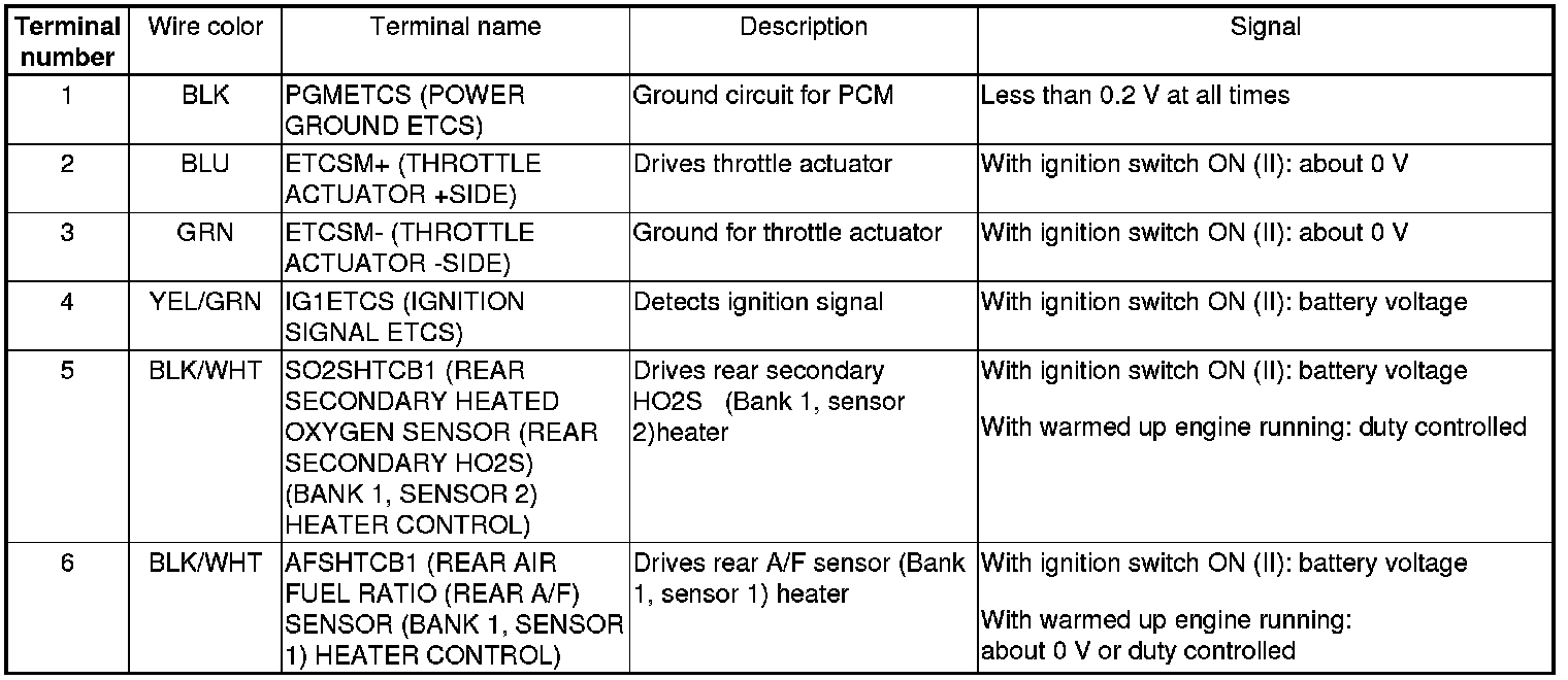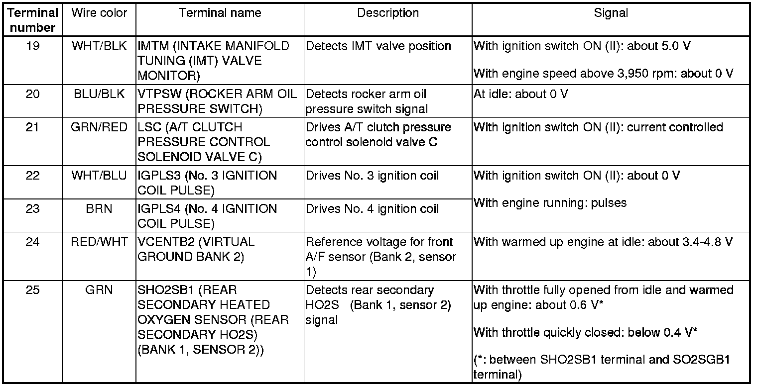 PCM Inputs and Outputs at PCM Connector A (square) (49P)