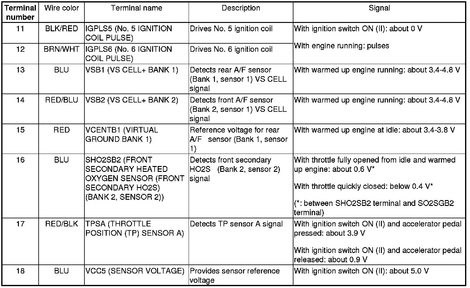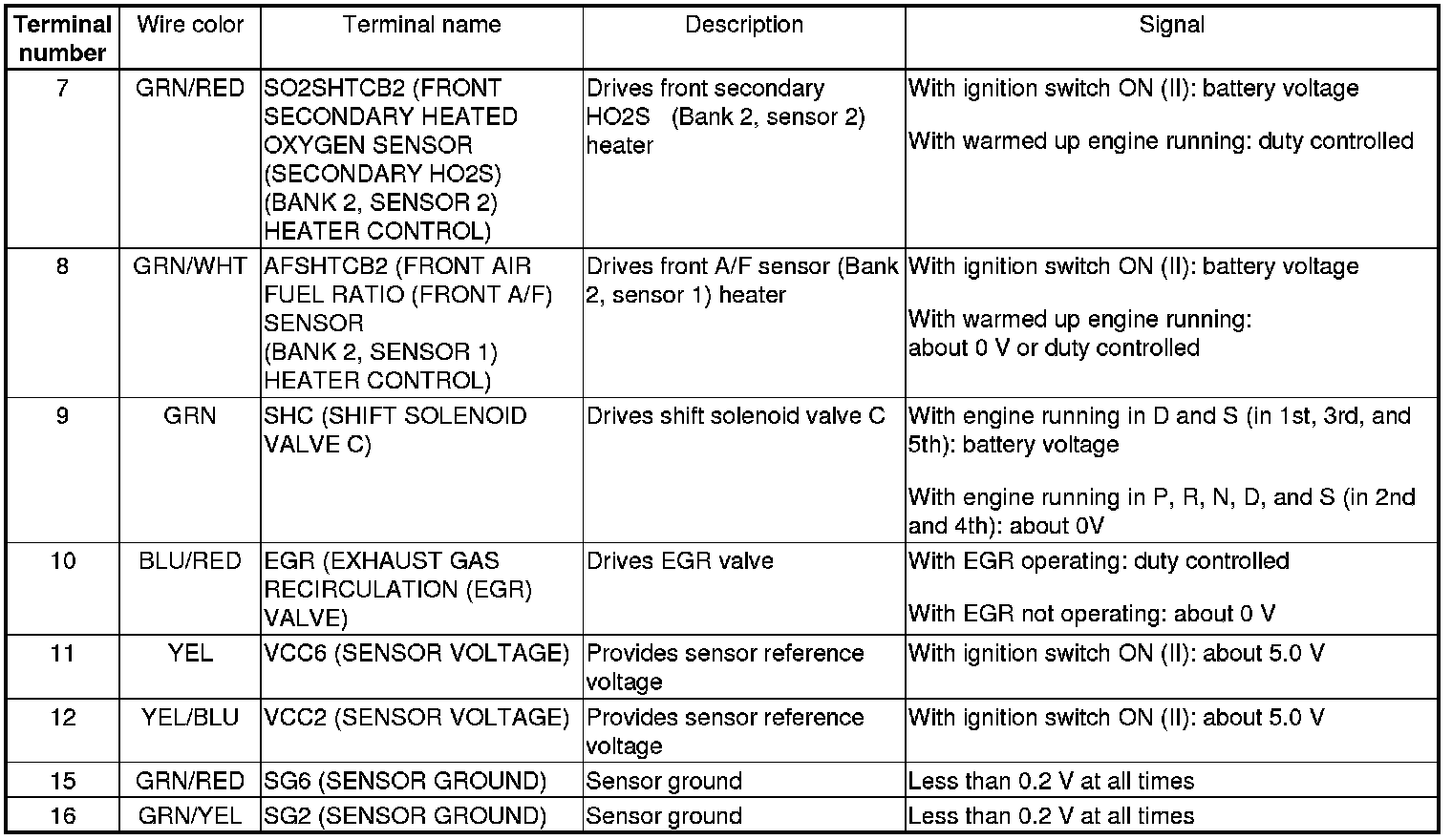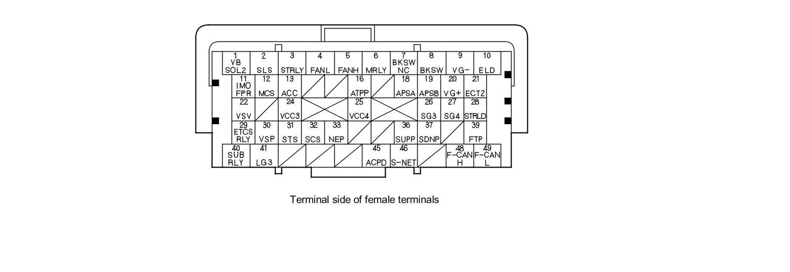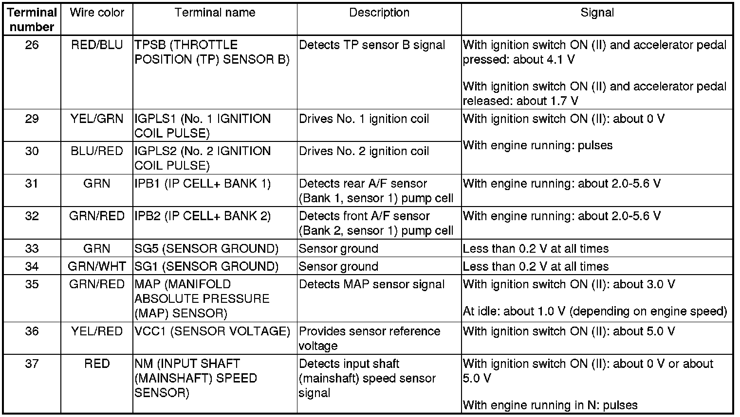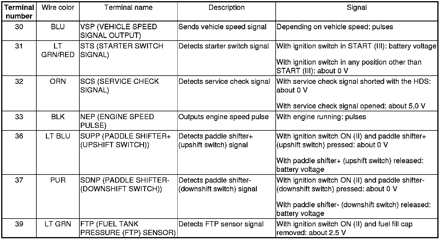 PCM Inputs and Outputs at PCM Connector A (square) (49P)