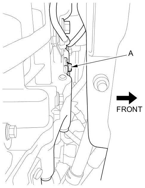 6. Connect the A/T oil pressure gauge to the line pressure inspection port (A). Do not allow dust or other foreign particles to enter the hole while connecting the A/T oil pressure gauge.