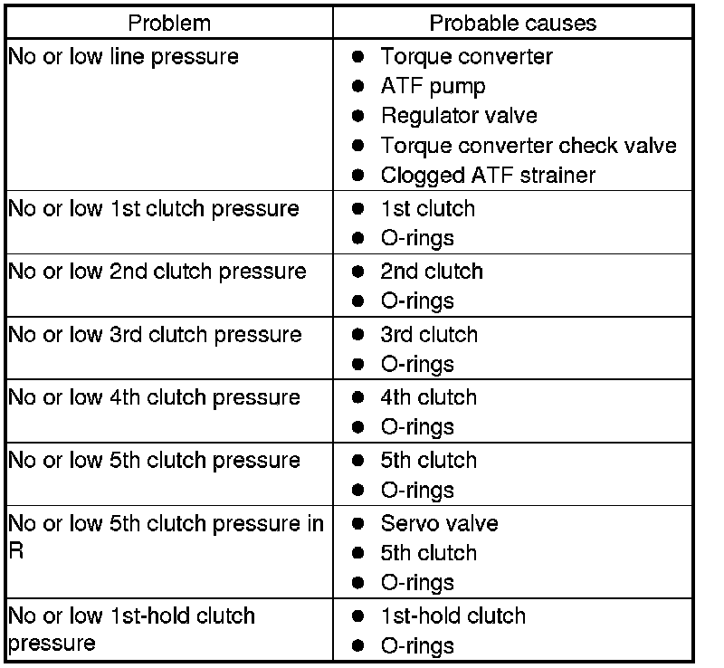31. If any of the pressures are out of the service limit, refer to the problems and probable causes listed in the table.