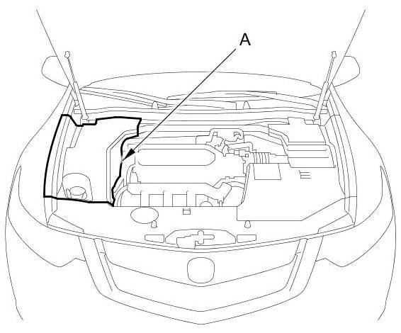 2. Remove the right engine compartment cover (A) Service and Repair.