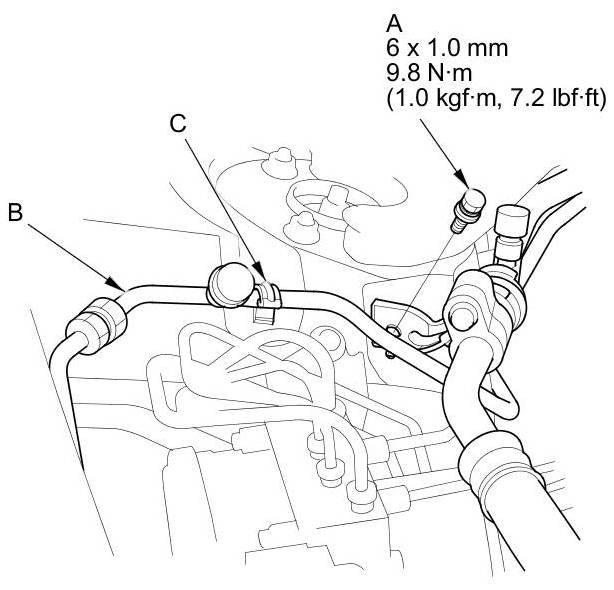8. Remove the receiver line (M) from the bracket, then remove the clips (N).