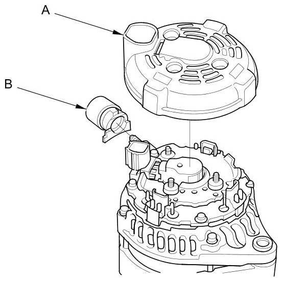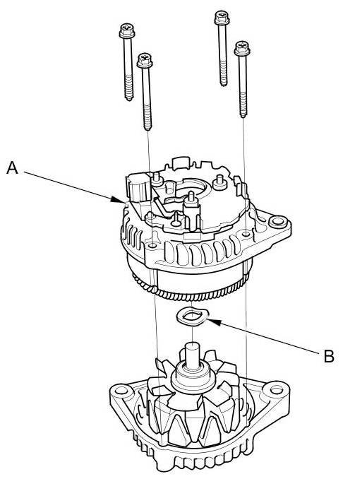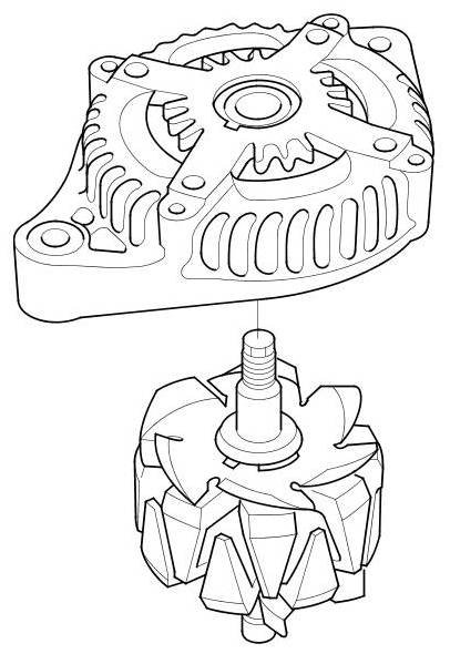 22. After assembling the alternator, turn the pulley by hand to make sure the rotor turns smoothly and without noise.