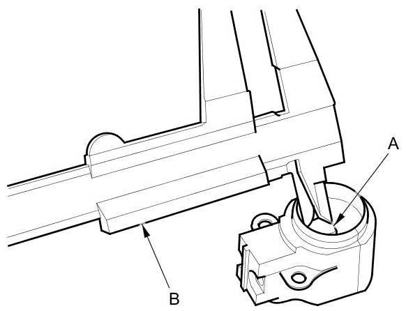 13. Measure the length of both brushes (A) with a vernier caliper (B):