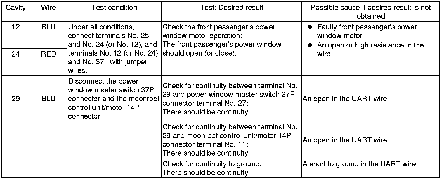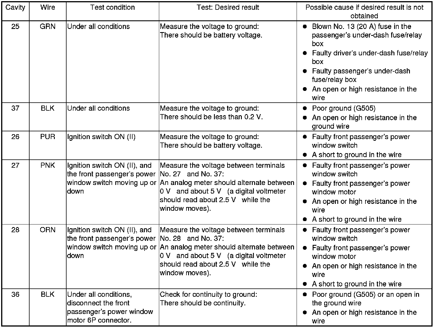 - If all the input tests prove OK, replace the front passenger's power window switch Front Passenger's Power Window Switch Replacement.