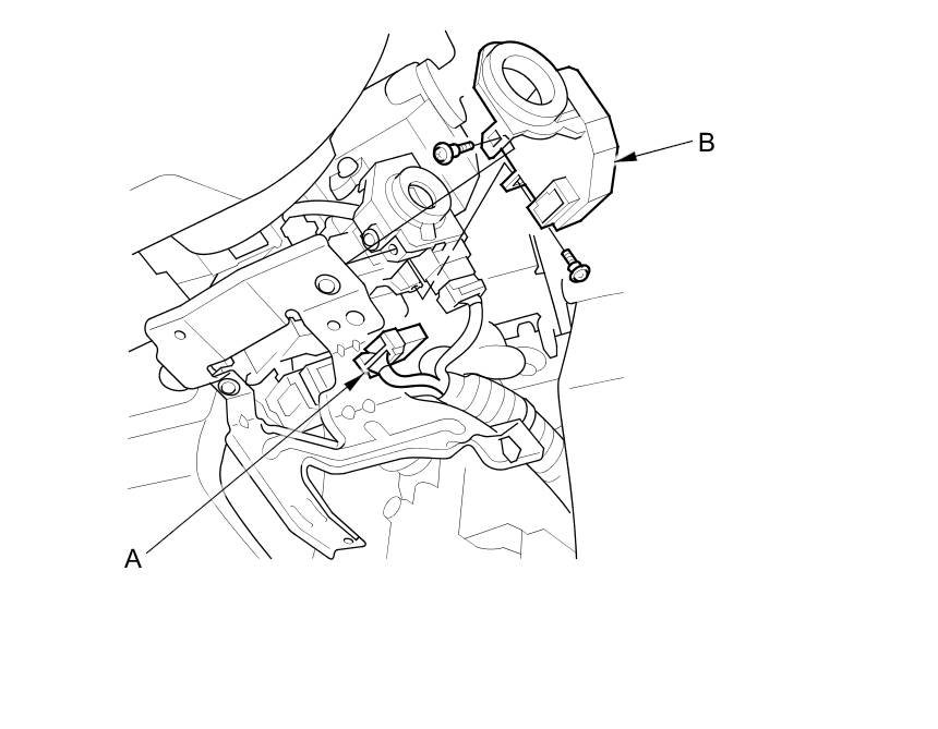 2. Disconnect the 7P connector (A) from the immobilizer-keyless control unit (B).