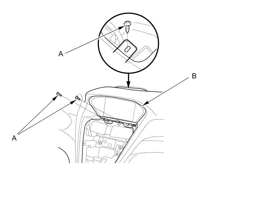 3. Remove the self-tapping screws (A) from the navigation display unit (B).