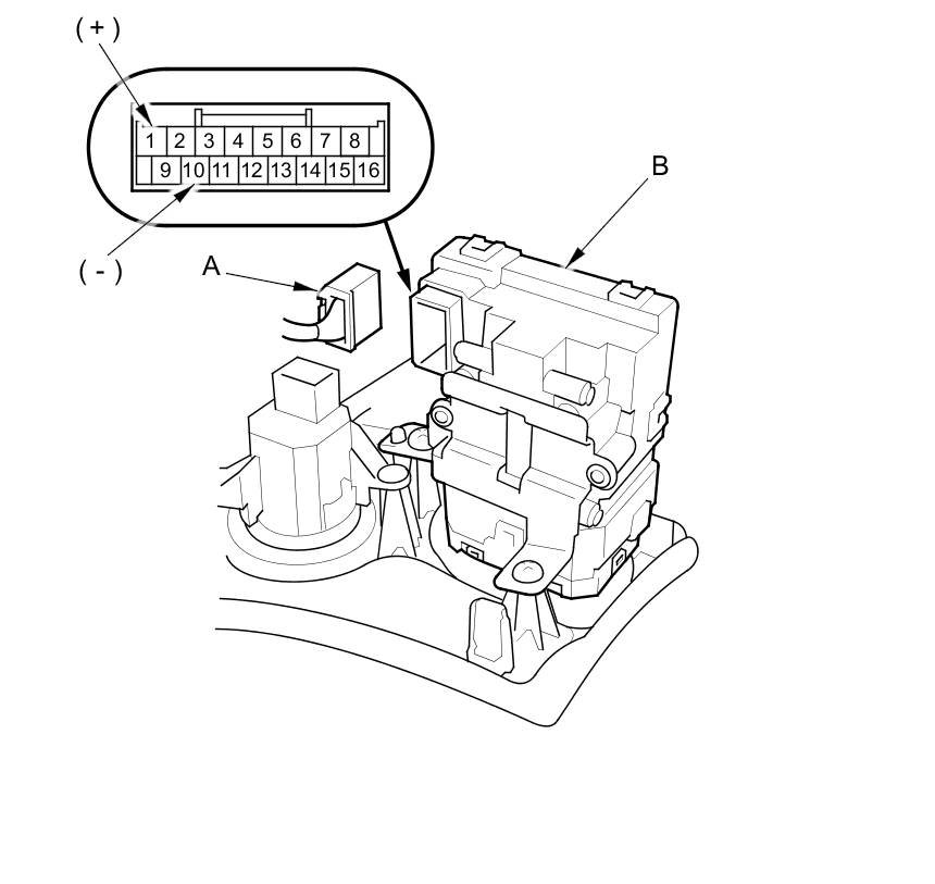 2. Disconnect the 16P connector (A) from the remote slot (B).