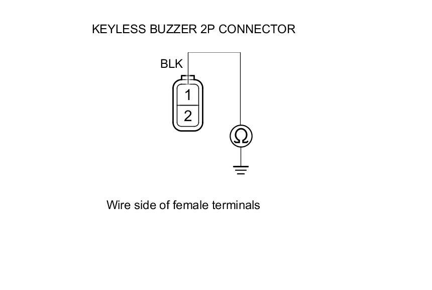 6. Check for continuity between body ground and keyless buzzer 2P connector terminal No. 1.