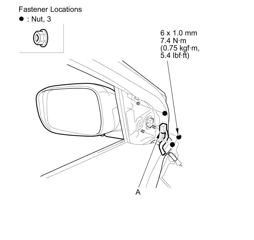 4. While holding the power mirror, remove the nuts securing the mirror.