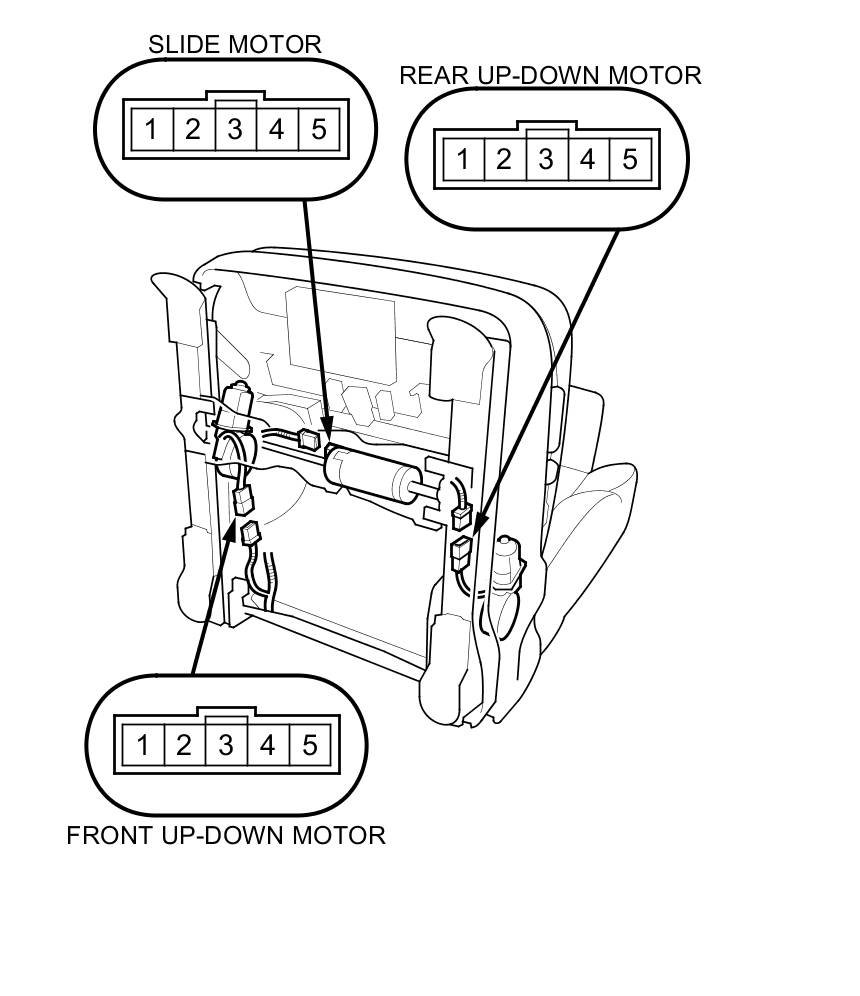 NOTE: The front and rear up-down motors are part of the seat frame.