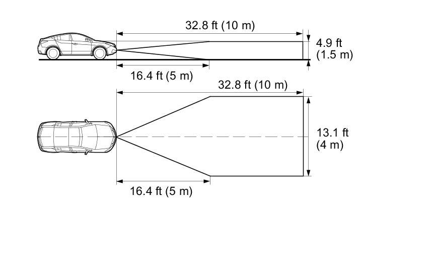 - Park the vehicle on level ground in a wide open space to avoid misadjusting caused by reflecting objects. The space needs to be 32.8 ft (10 m) in front, 13.1 ft (4 m) in width and 4.9 ft (1.5 m) in height.