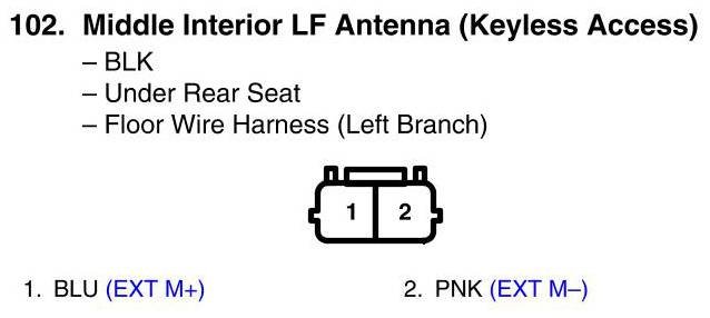 View 102 - Middle Interior LF Antenna Connector View (Keyless Access)