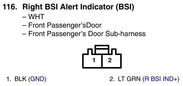 View 116 - Right BSI Alert Indicator Connector View (BSI)
