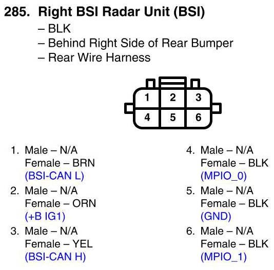 View 285 - Right BSI Radar Unit Connector View (BSI)