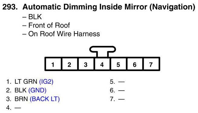 View 293 - Automatic Dimming Inside Mirror Connector View (Navigation)