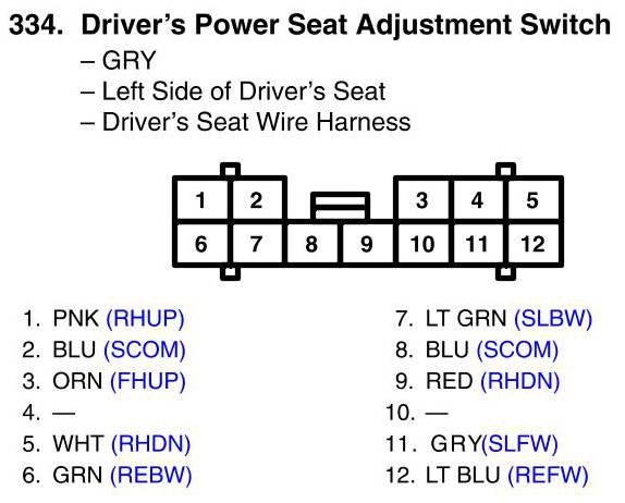 View 334 - Driver's Power Seat Adjustment Switch Connector View