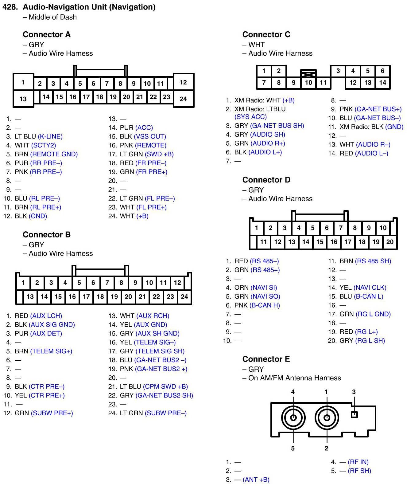 View 428 - Audio-Navigation Unit Connector View (Navigation)