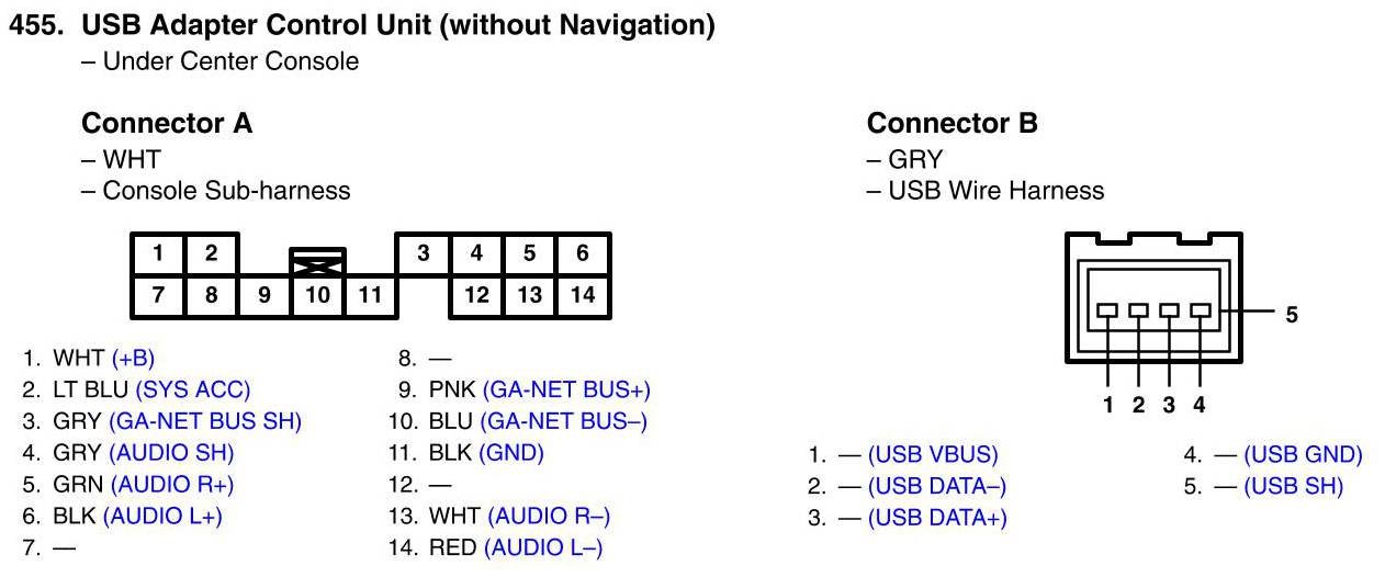 View 455 - USB Adapter Control Unit Connector View (Without Navigation)
