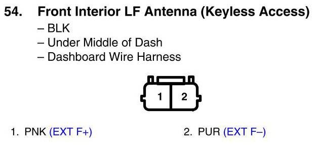 View 54 - Front Interior LF Antenna Connector View (Keyless Access)