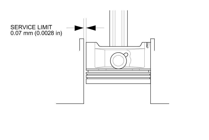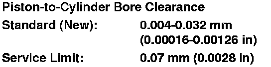 7. Calculate the difference between the cylinder bore diameter and the piston diameter. If the clearance is near or exceeds the service limit, inspect the piston and the cylinder bore for excessive wear.