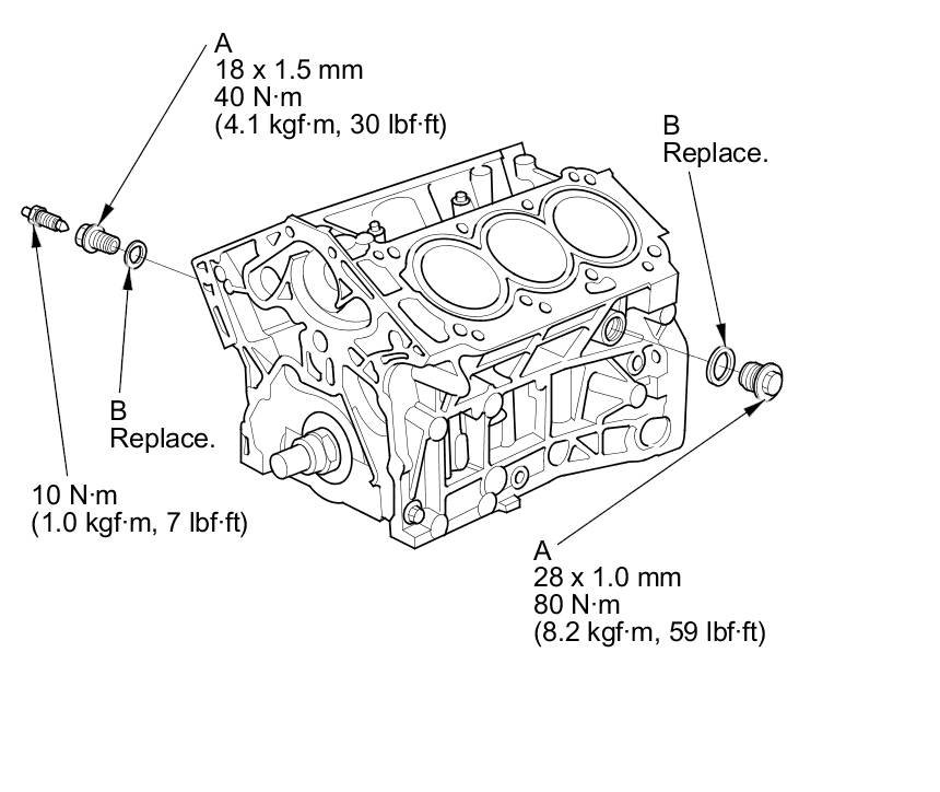 NOTE: When installing the sealing bolts (A), always use new washers (B).