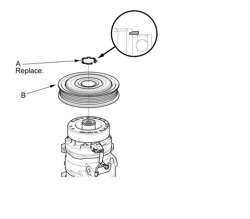 - Do not use a hammer to remove the snap rings. Using a hammer damages the A/C compressor.