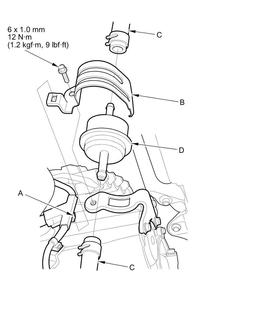 6. Disconnect the ATF cooler hoses (C) from the ATF filter (D).