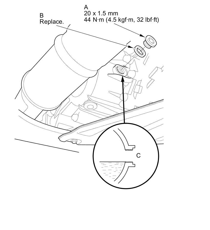 8. Install the filler plug with a new sealing washer.