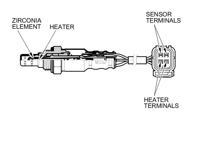 The secondary HO2S detects the oxygen content in the exhaust gas downstream of the warm up three way catalytic converter (WU-TWC), and sends signals to the PCM. To stabilize its output, the sensor has an internal heater. The PCM compares the HO2S output with the A/F sensor output to determine catalyst efficiency. A secondary HO2S is installed in each bank downstream of the WU-TWC.