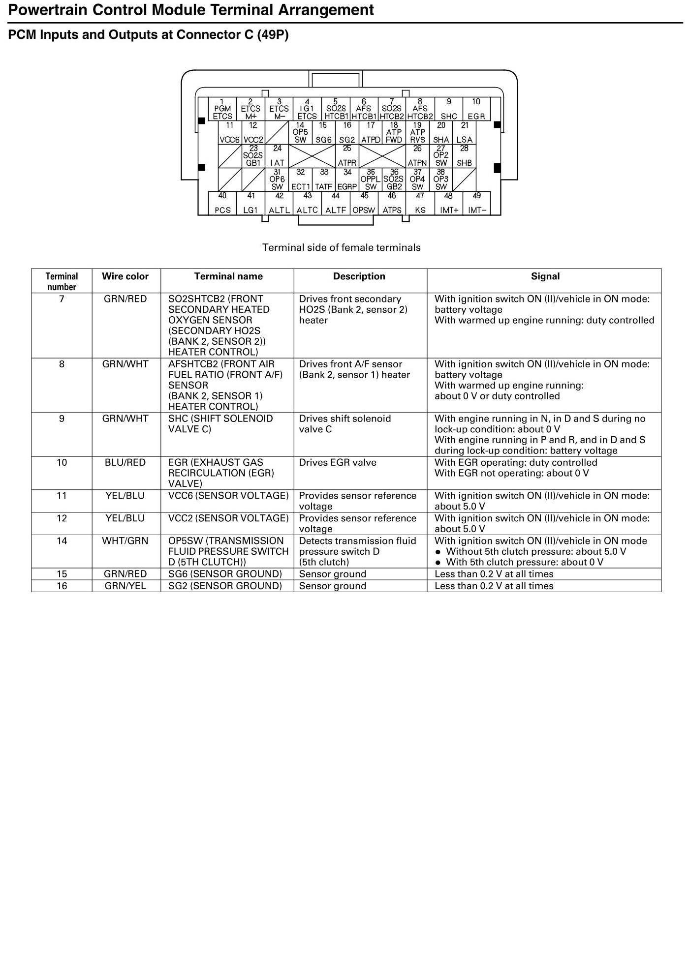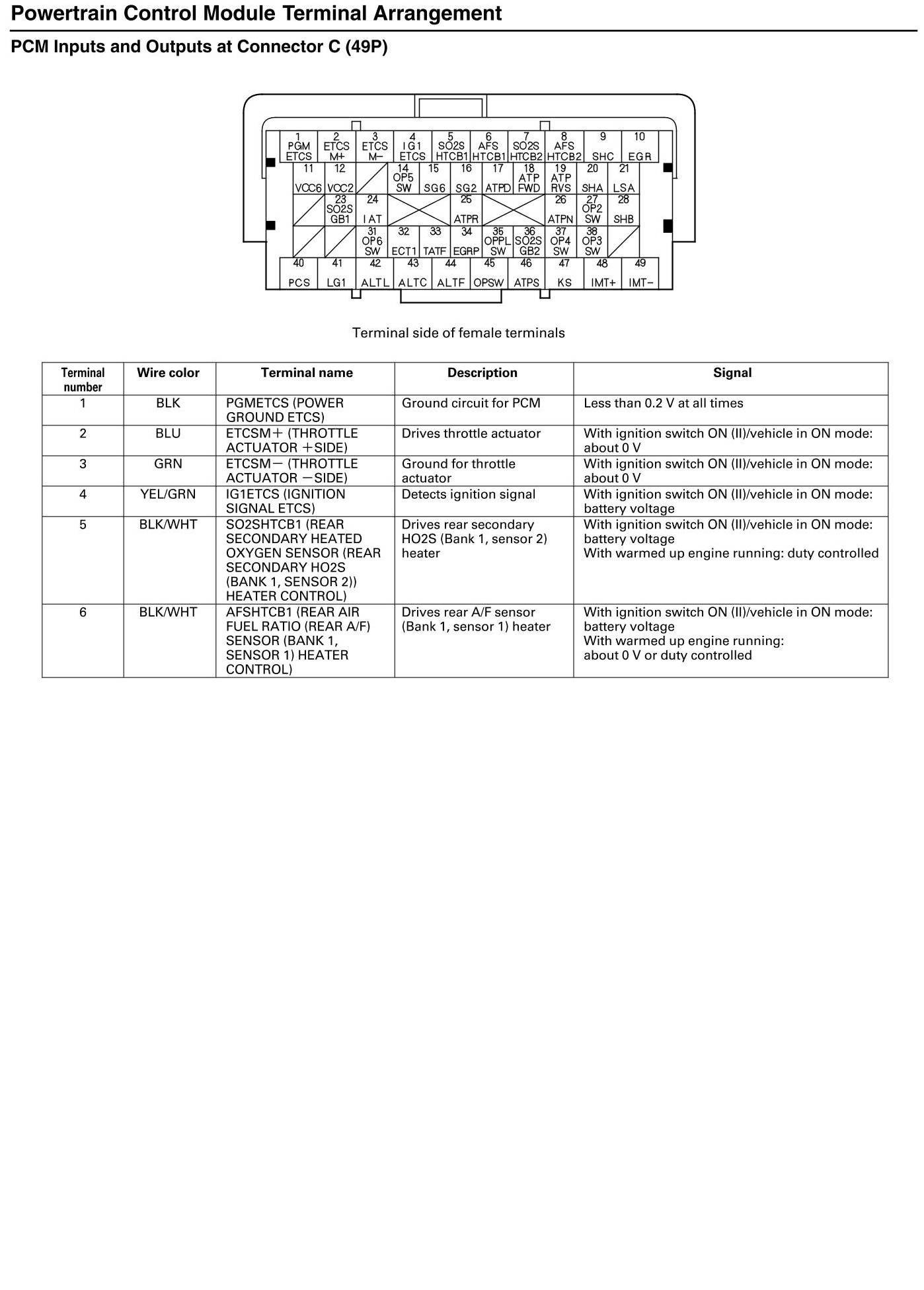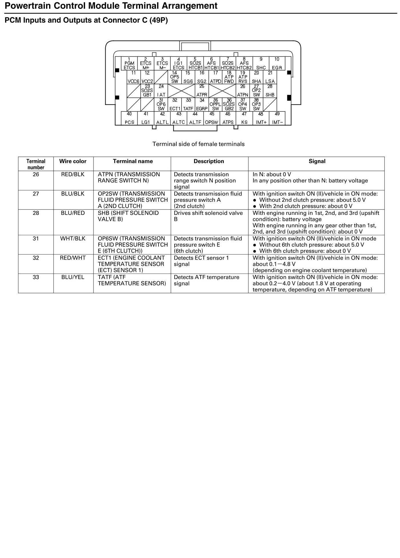 PCM Inputs And Outputs At Connector C